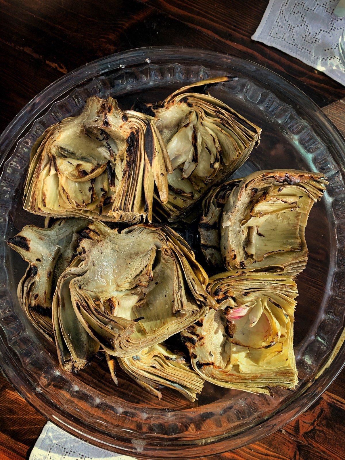 grilling artichokes is actually very easy; we hadn’t tried it before, so we were pleasantly surprised to discover how simple it was. i have a feeling we will be making this dish quite often in the upcoming weeks…