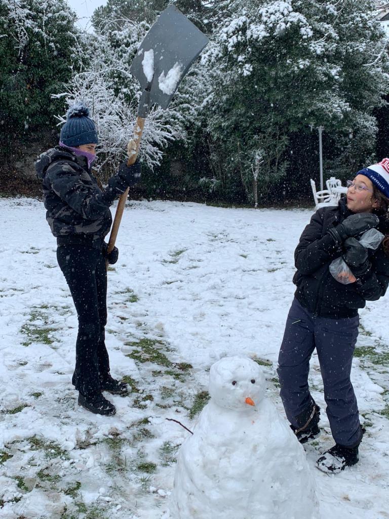 the snow brought us a LOT of joy- we made a snowman, had snowball fights, made snow angels, drank hot chocolate and of course, baked brownies- yum!