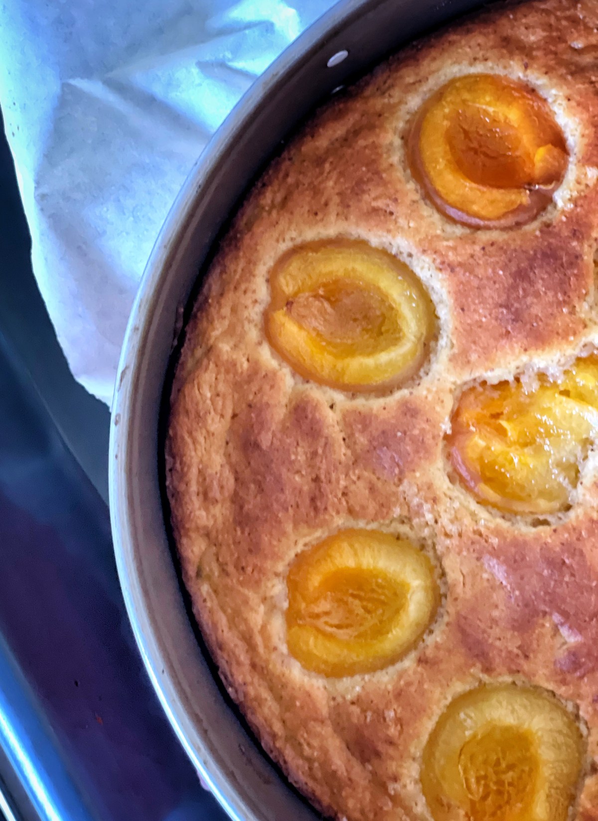 - press apricots halves, skin side down, into batter- sprinkle with a bit of brown sugar if desired