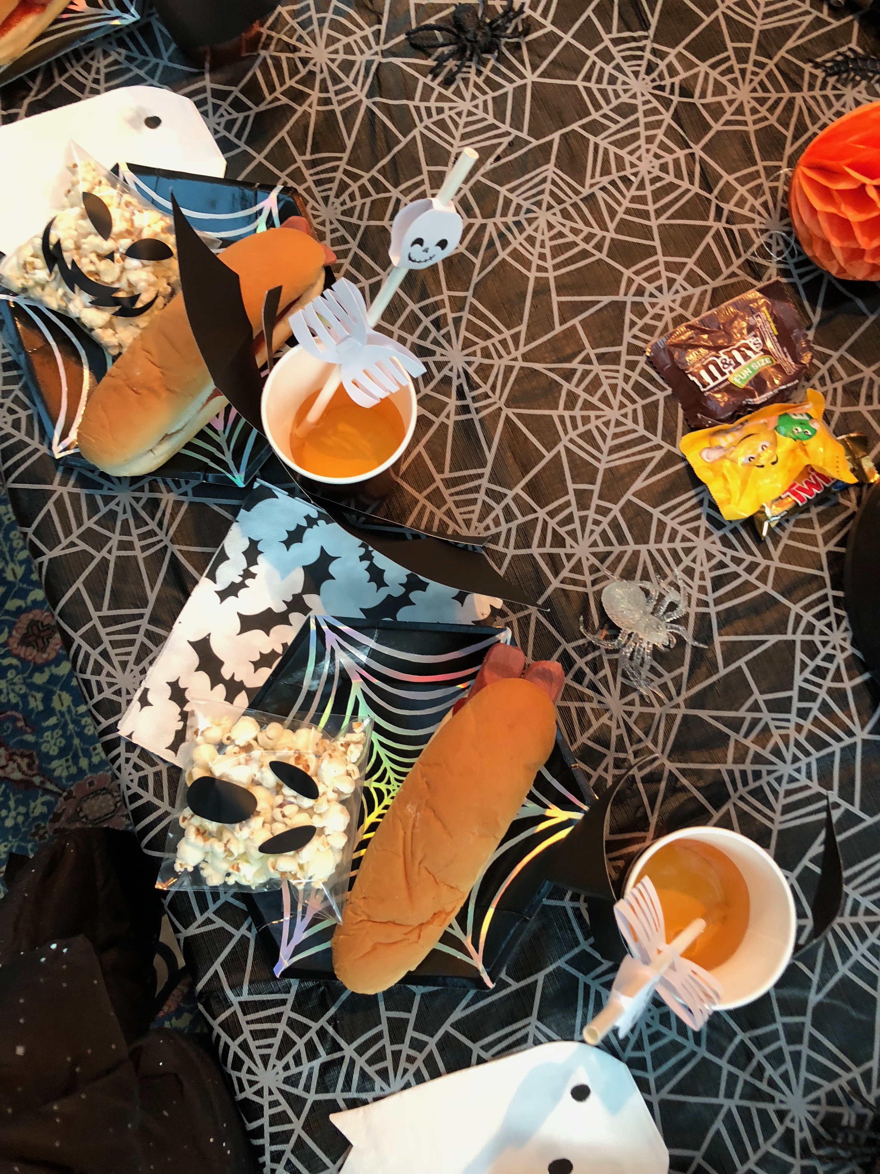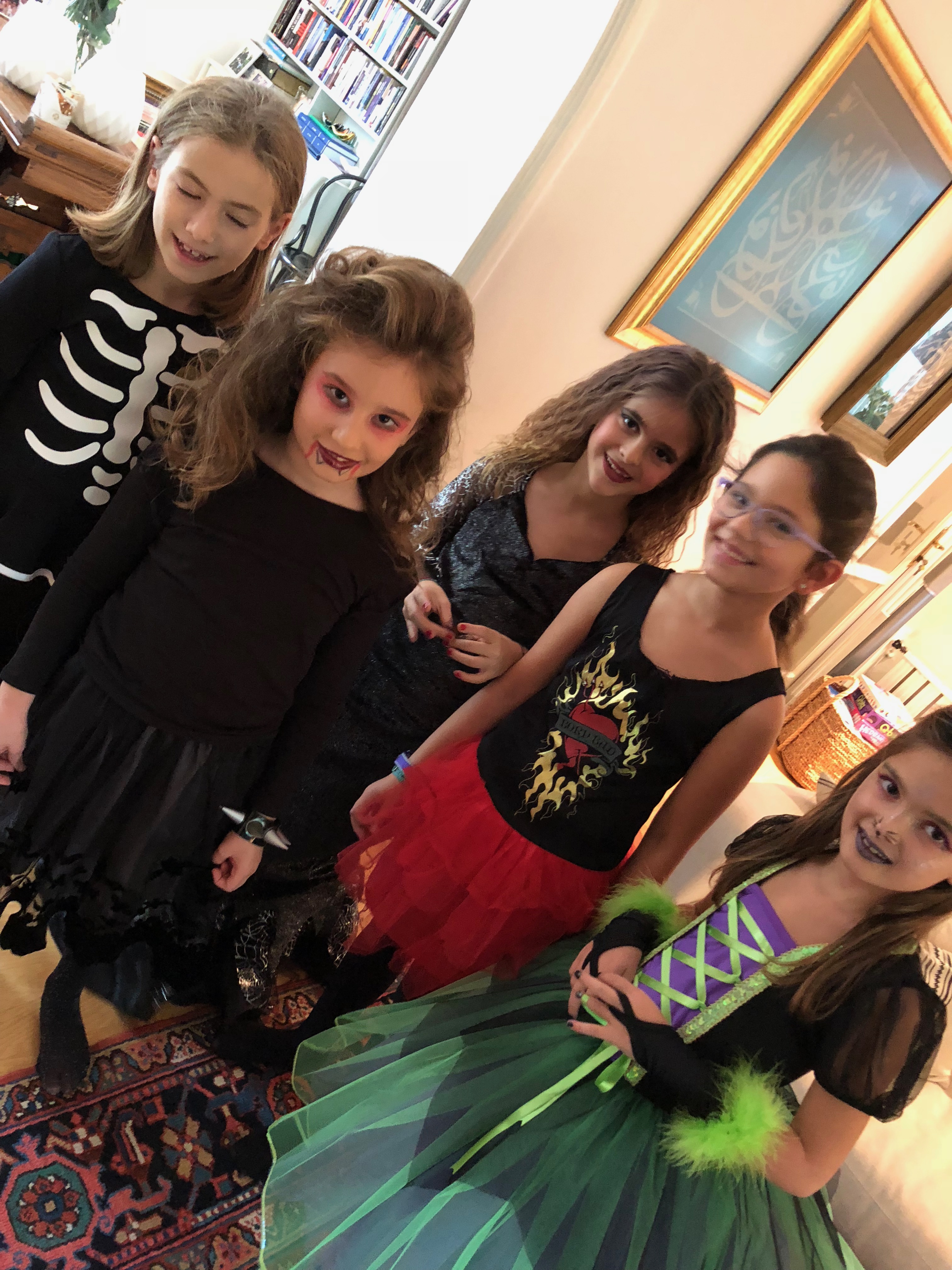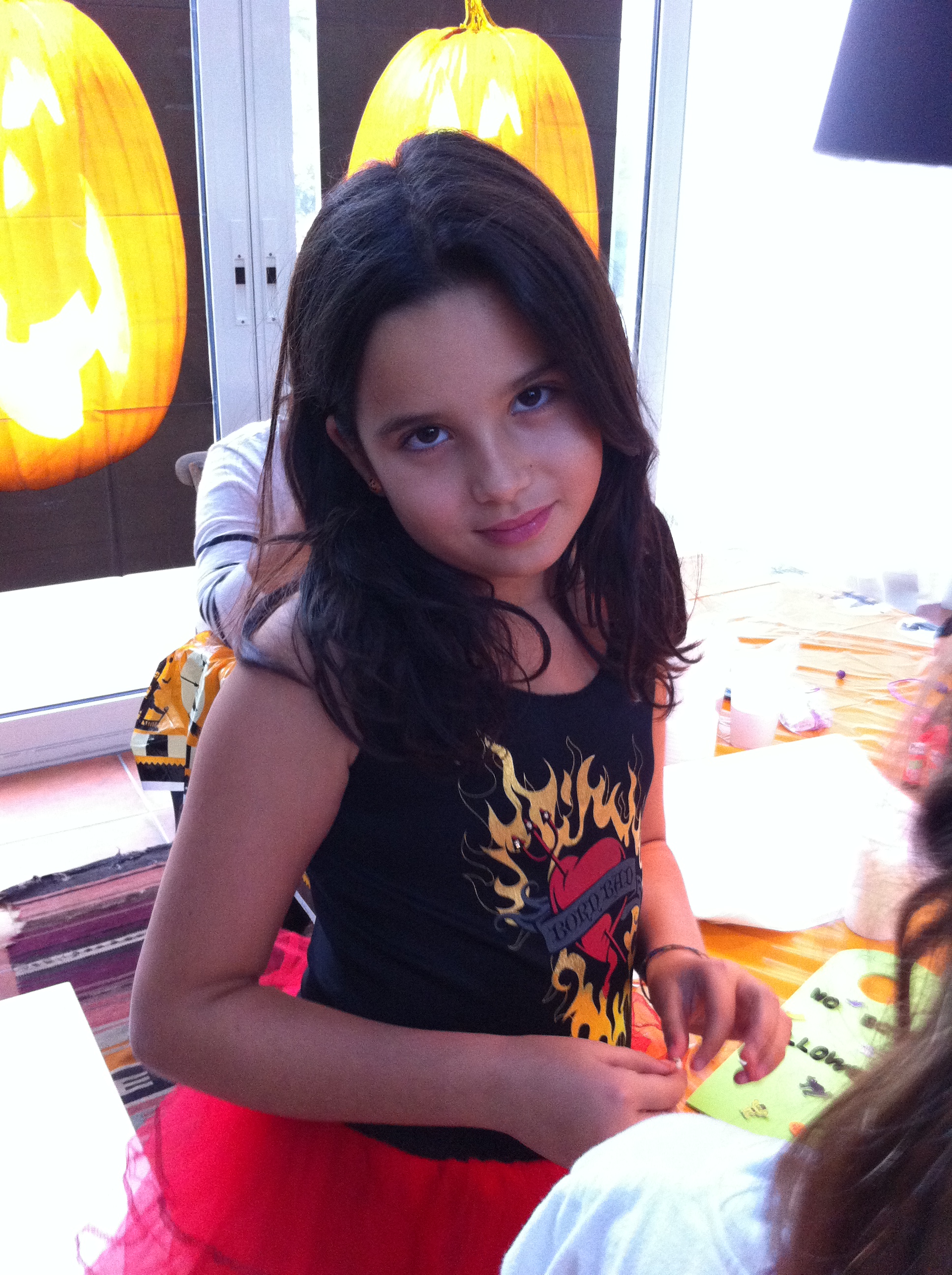 the party at our house in the afternoon was a ton of fun! most of the girls came home with alegra so they were all able to get into costume together and even that was a lot of fun. we had a wonderful lady come to do makeup so we ended up with seriously spooky vampires, zombies, witches and ghosts… scary and spooky is very in with the third grade crowd although i am happy to say we also had a very cute cat, a bright orange pumpkin, and our very own youtuber (who by the way stayed in costume throughout the entire party- speaking and reacting the way the youtuber she was portraying might- i was very impressed).